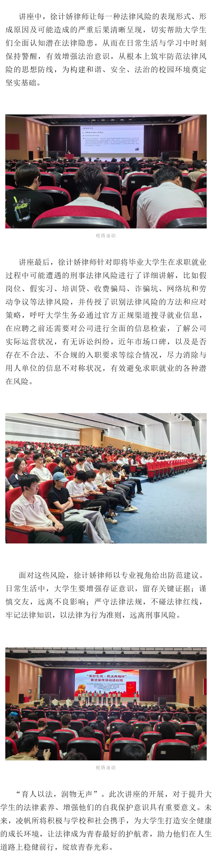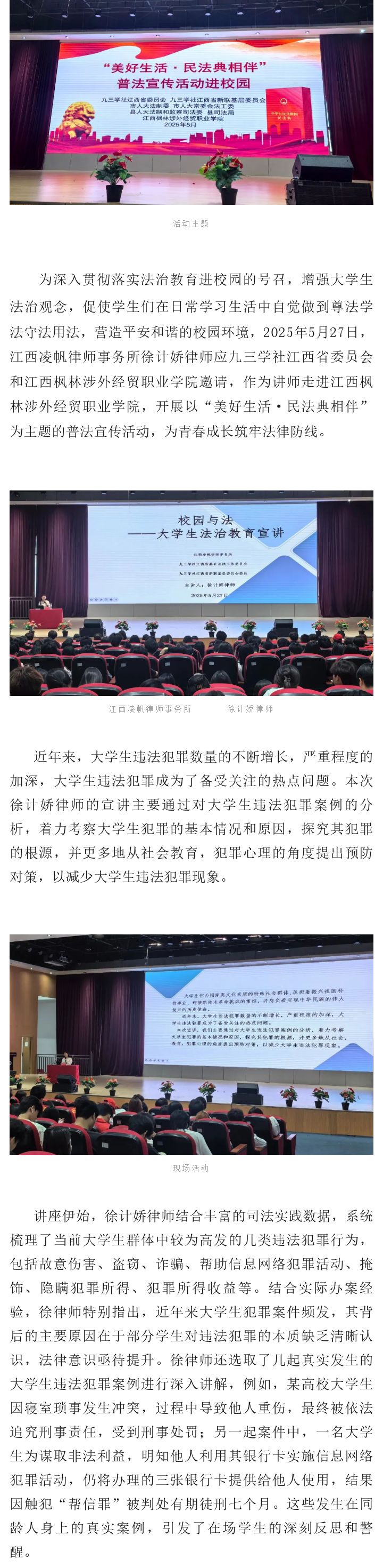 凌帆动态 | 徐计娇律师受邀到江西枫林涉外经贸职业学院开展预防犯罪普法讲座