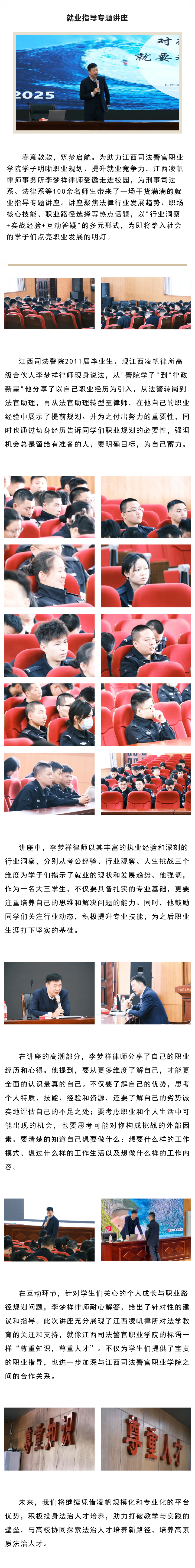 护航青春 职引未来 | 李梦祥律师走进江西司法警官职业学院开展就业指导专题讲座